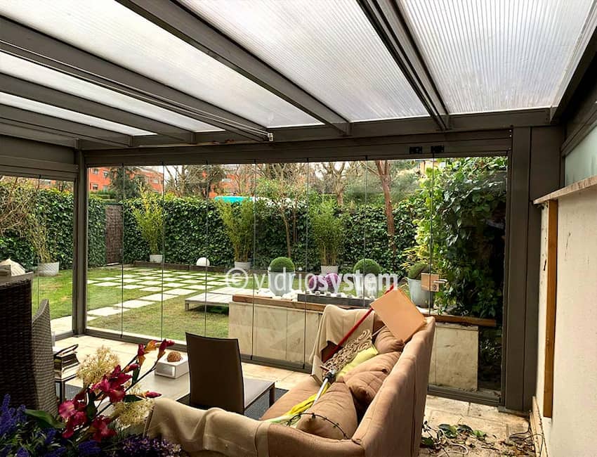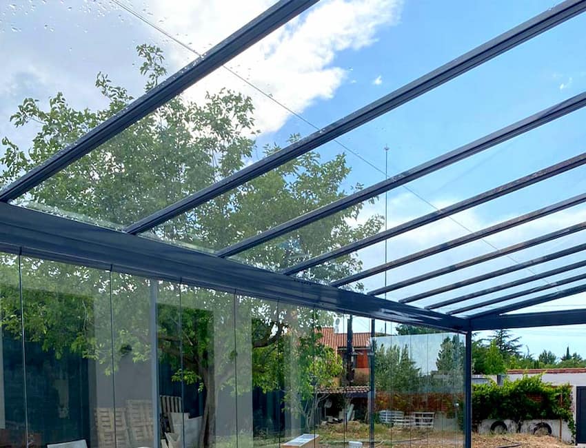 Los techos fijos de vidrio combinan elegancia y funcionalidad, proporcionando protección contra el clima sin sacrificar la luminosidad.